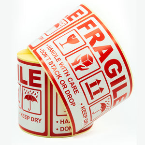 Warning Labels on Roll 90x150 mm 300 pcs FRAGILE- handle with care- keep dry- don’t stack or drop- this way up